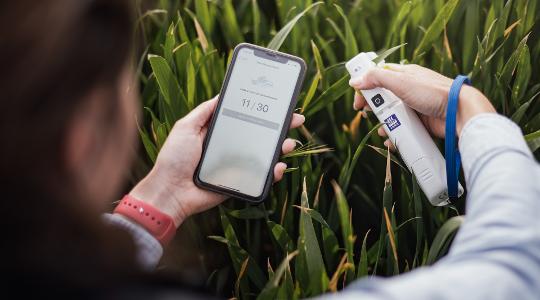 It works by taking photos within the app of the crop which are then compared to several 100,000 images within our database. From this we can determine how much nitrogen has been taken up by the crop and translate that into a nitrogen recommendation. This then takes the guesswork out of that first application and could save you wasting fertiliser.